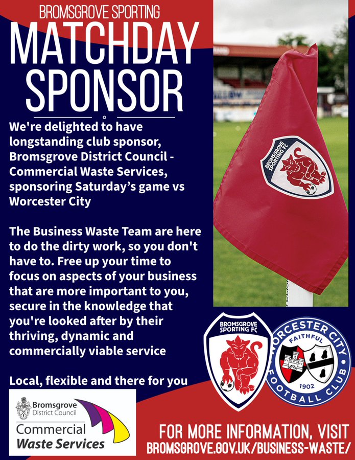 We are proud to announce that once again, our good friends at Bromsgrove District Council Commercial Waste Services will be sponsoring this match.