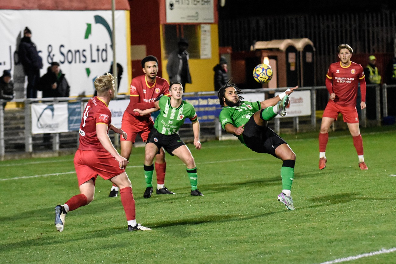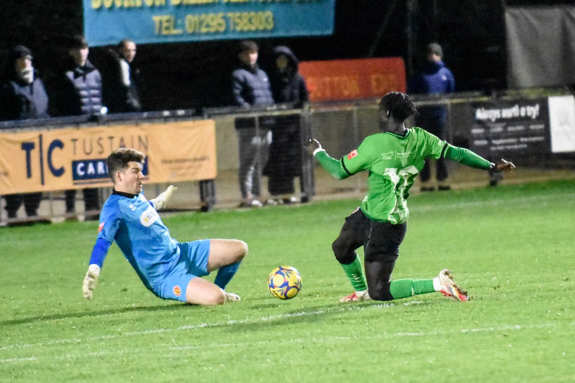 Sanderson had further opportunities to level the scoring moments later, but his two chances in quick succession were saved well by Banbury keeper Jack Harding.