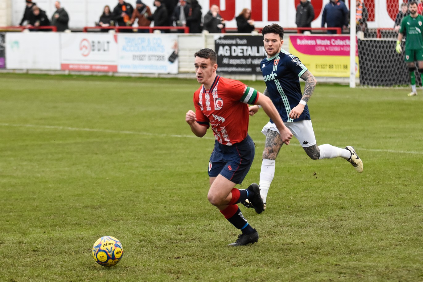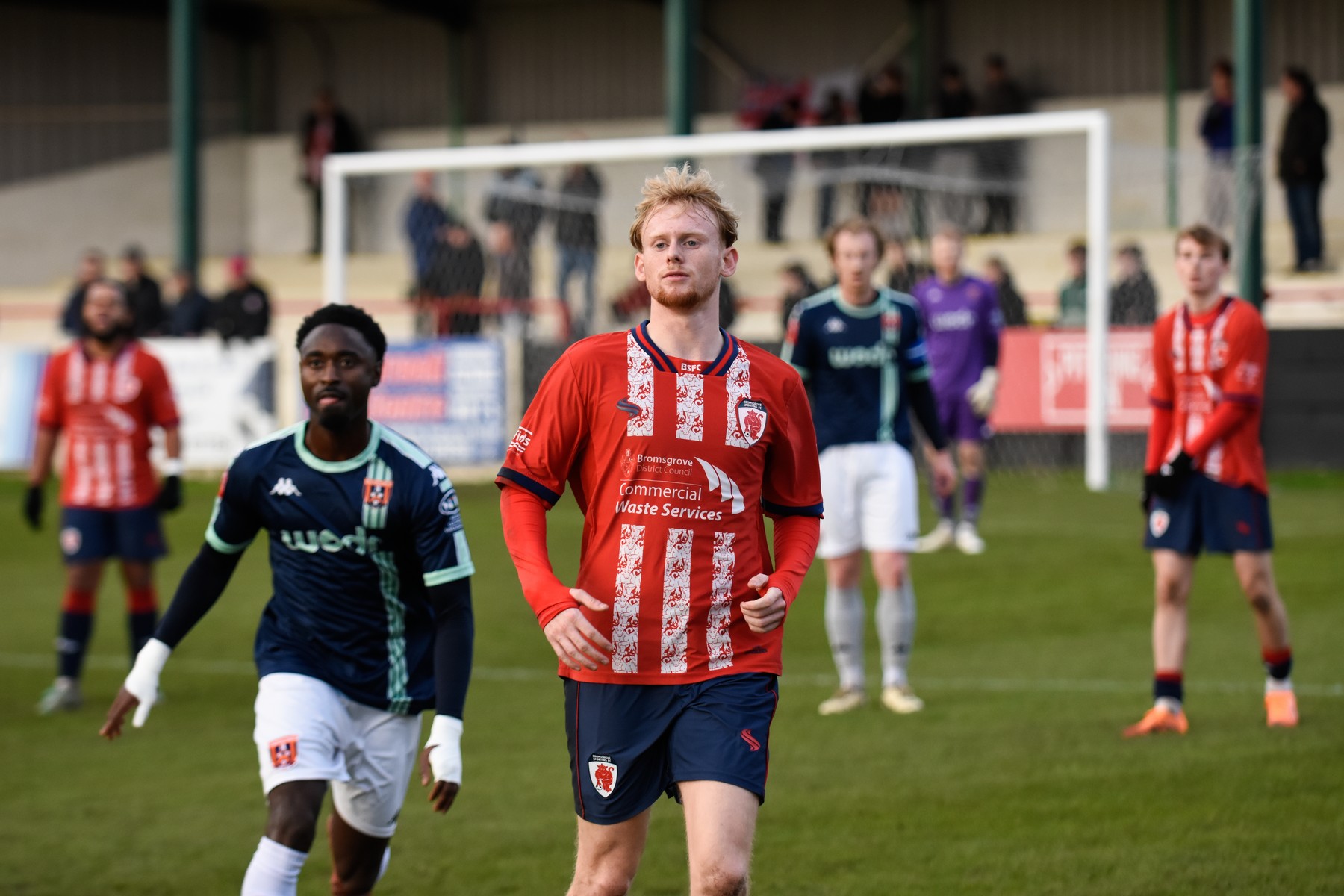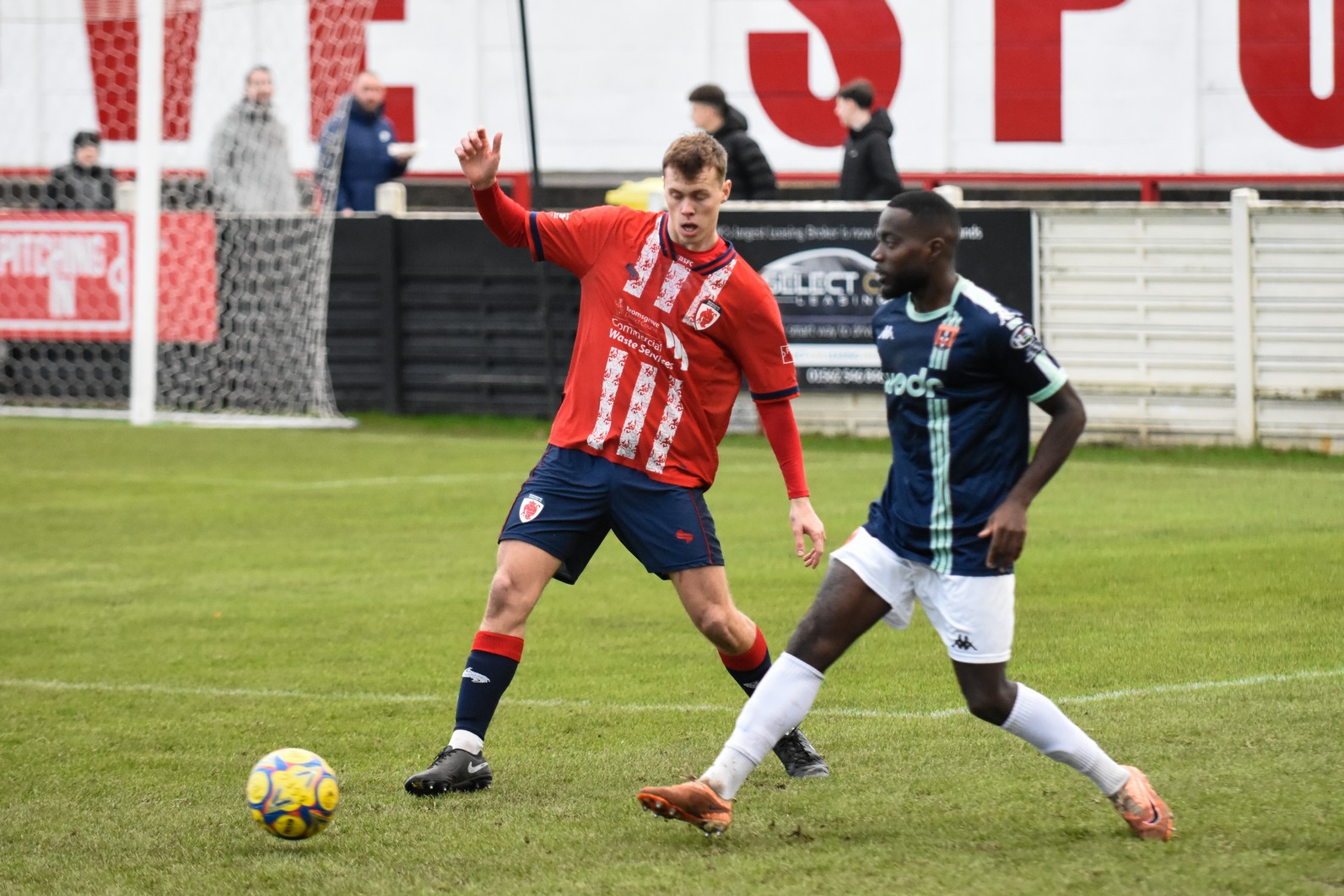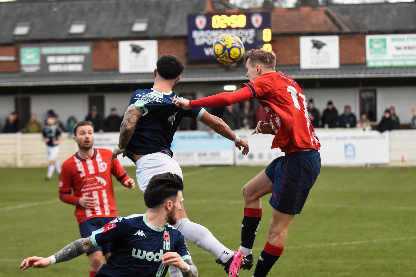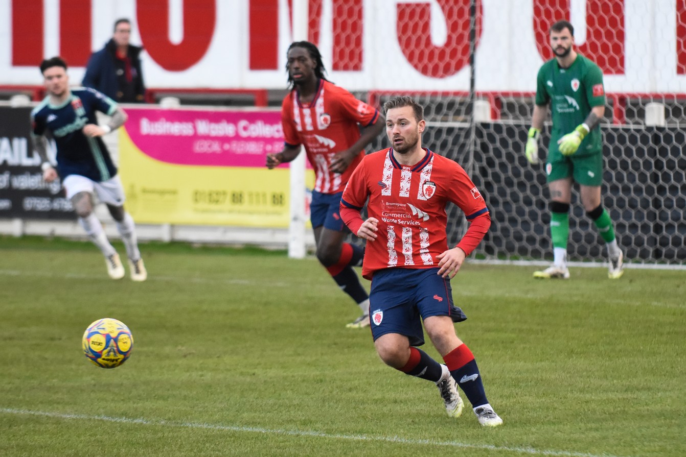 The 53rd minute saw Bromsgrove's Luke Softley have a close range header tipped onto the crossbar by Weaver - two minutes later, Stratford took the lead, as James found the top corner from inside the area.
