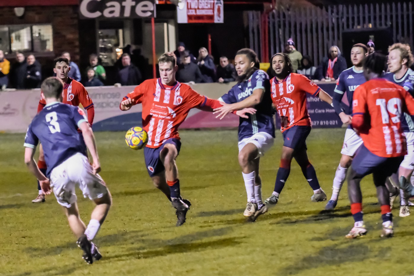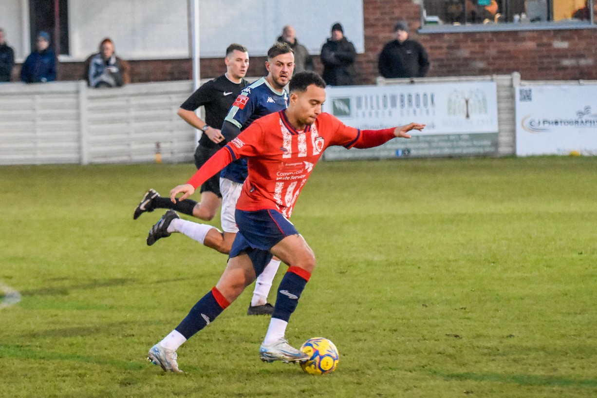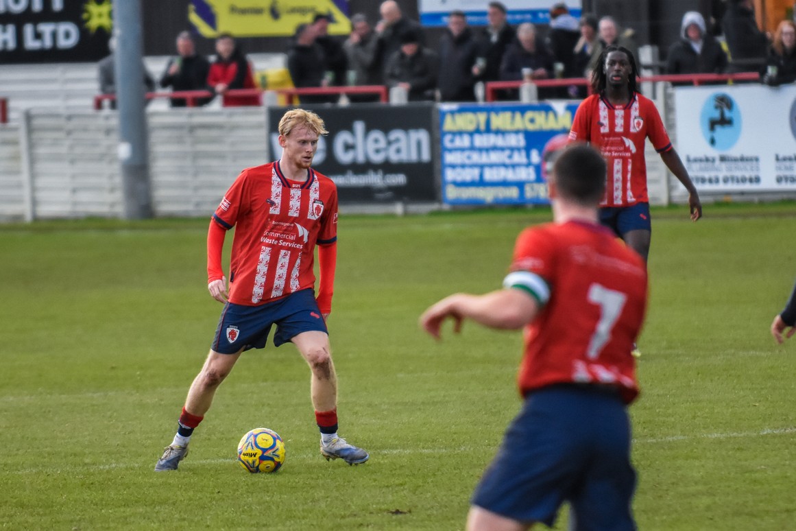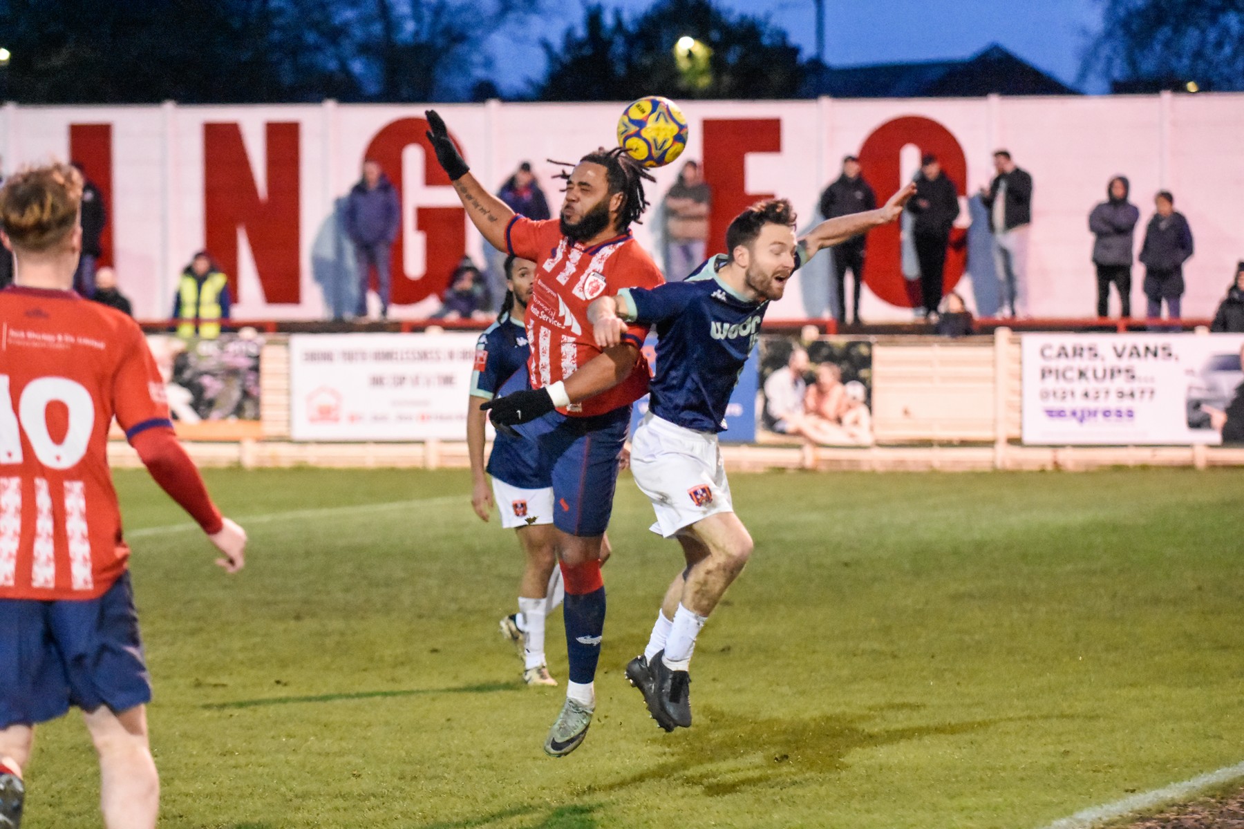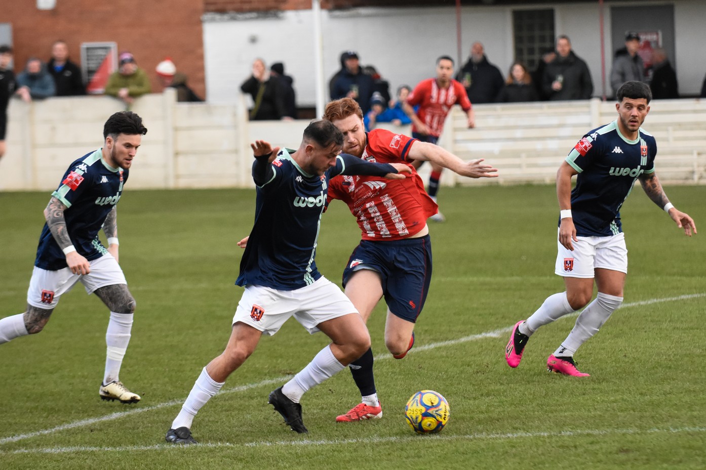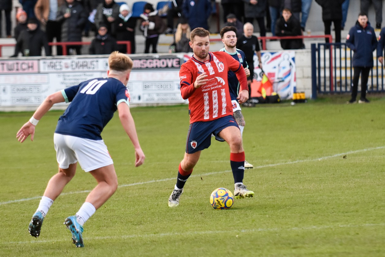 The 53rd minute saw Bromsgrove's Luke Softley have a close range header tipped onto the crossbar by Weaver - two minutes later, Stratford took the lead, as James found the top corner from inside the area.