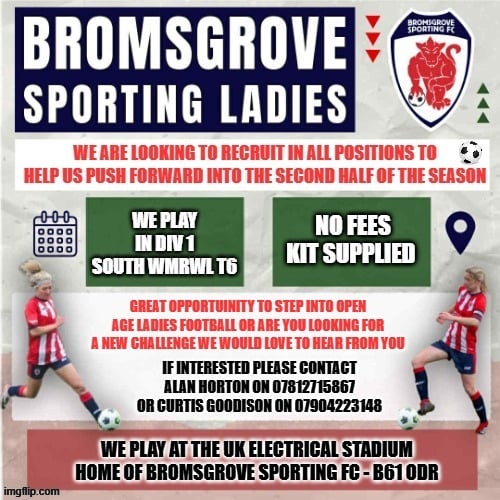 • This Sunday, they are at home to Dudley Town Women in the league (2:00 KO, Studley Sports and Social Club, B80 7HP)